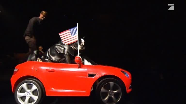 Knight Rider ist in der Coolness nichts dagegen und selbst Michael Schumacher wird blass bei diesen Fahrkünsten, wenn der coolste Hund des Universums seine Runden durchs Studio dreht.