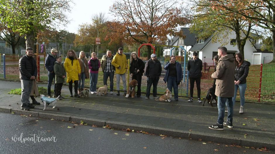 Die 8 Wochen Hunde-Schule sind fast vorbei. Am letzten Tag müssen die Hunde-Schüler eine Abschluss-Prüfung machen. Sie sollen zeigen, was sie gelernt haben.