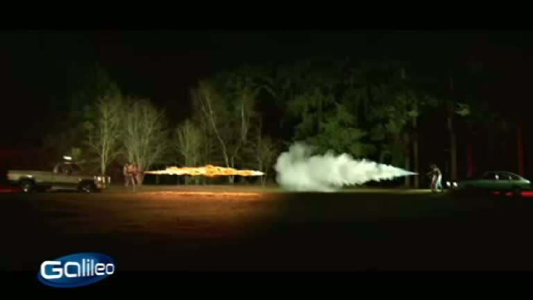 Eine epische Schlacht: Zwei düstere Gestalten duellieren sich im Wald. Ihre Waffen: Flammenwerfer gegen Feuerlöscher. Das Musikvideo „Ritalin“ der Gruppe „Dancing Pigeons“ zeigt in spektakulären Zeitlupen-Bildern, wie zwischen Feuerwucht und Löschkraft ein Gleichgewicht herrscht. Alles nur Special Effects? Oder kann man einen Feuerlöscher mit einem Flammenwerfer aufhalten? Im Galileo Fake Check stellen wir das Video eins zu eins nach. Atemberaubende Bilder garantiert!