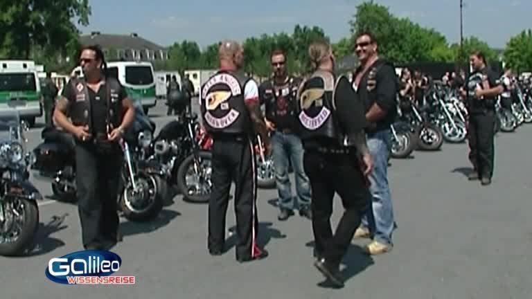 In der Nacht von Dienstag auf Mittwoch stürmten Spezialeinheiten in Bayern 136 Quartiere von Rockerbanden. Mehr als 1700 Polizeibeamte aus der gesamten Bundesrepublik und 350 Spezialkräfte waren im Einsatz – Eine der größten Razzien der letzten Zeit. Die Beute der Fahnder: Waffen, Betäubungsmittel, Munition, Messer und Schlagringe. Fünf Personen werden festgenommen. Doch was sind Rockerbanden überhaupt und wo haben sie ihren Ursprung? Motorradclubs - unser Ort der Woche!