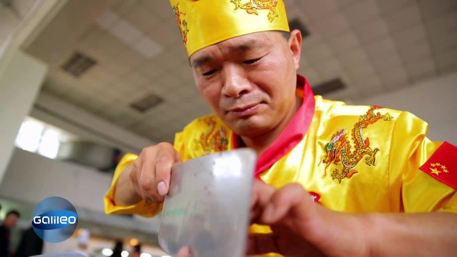 Dieser chinesische Koch beweist Fingerspitzengefühl der Extraklasse. Präzise und ohne zu zögern, filetiert er sogar Essen im Gesicht anderer Leute - ohne jemanden zu schneiden! Galileo hat die außergewöhnlichsten Meister ihres Faches getroffen.