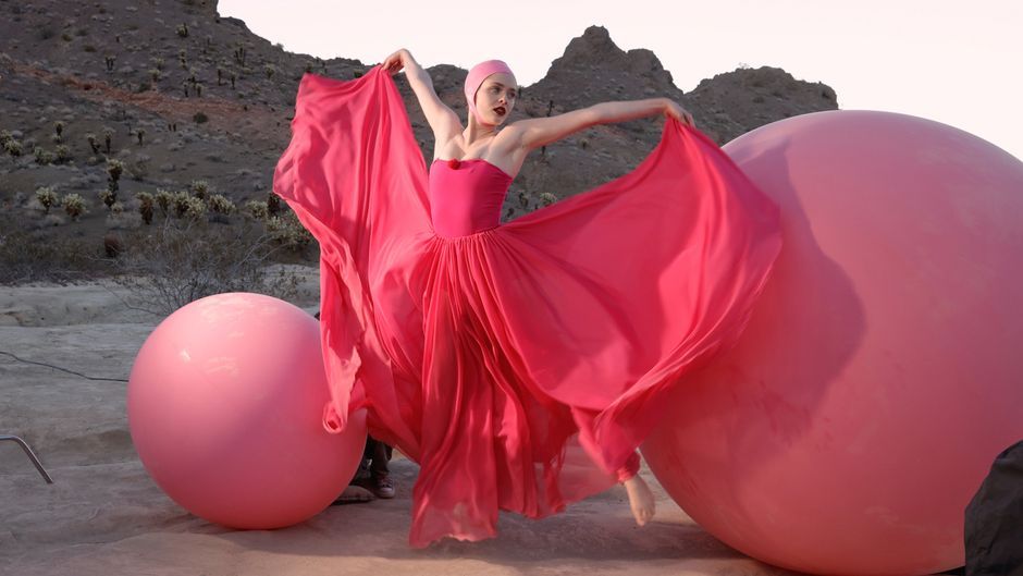 Kristian Schuller shootet ein extravagantes Foto mit den Models: Mitten in der Wüste posieren die Kandidatinnen mit großen Bällen und wehenden Tüchern. Für den Entscheidungs-Walk laufen die Topmodel-Anwärterinnen eine Fashionshow mitten auf einem Highway.