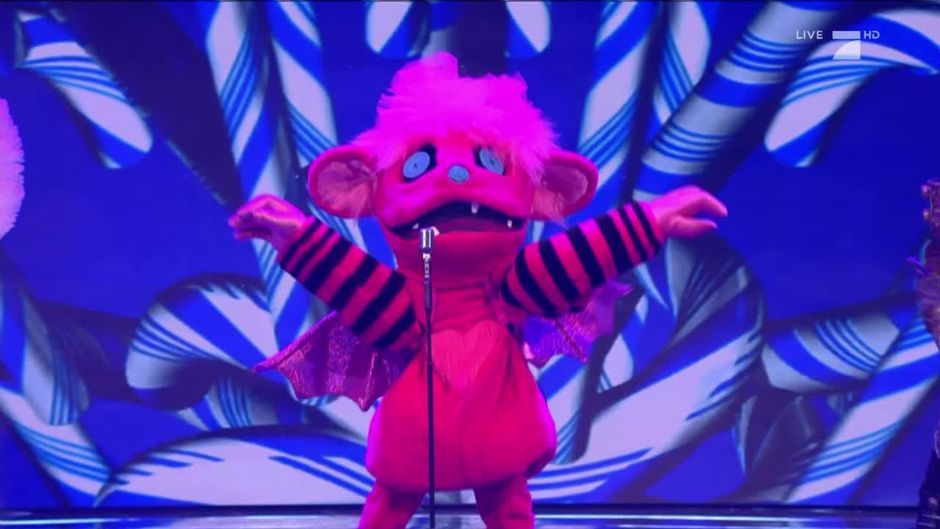 Eigentlich sind beim #GNTM-Finale hauptsächlich Models auf der Bühne, aber dann taucht plötzlich ein kuscheliges Monster auf! Das pink-schwarz-gestreifte Tier singt "Sweet but Psycho". Aber wer steckt darunter?