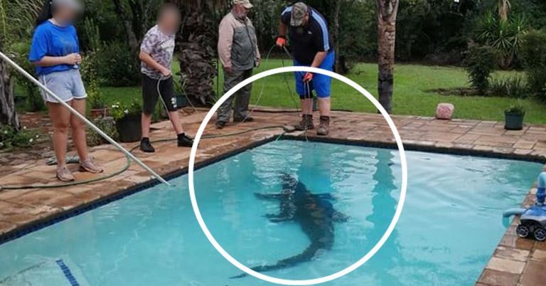Mit so einer tierischen Überraschung hat diese Familie aus Südafrika wohl nicht gerechnet: Ein ausgewachsenes Krokodil hat sich in ihren Pool verirrt.