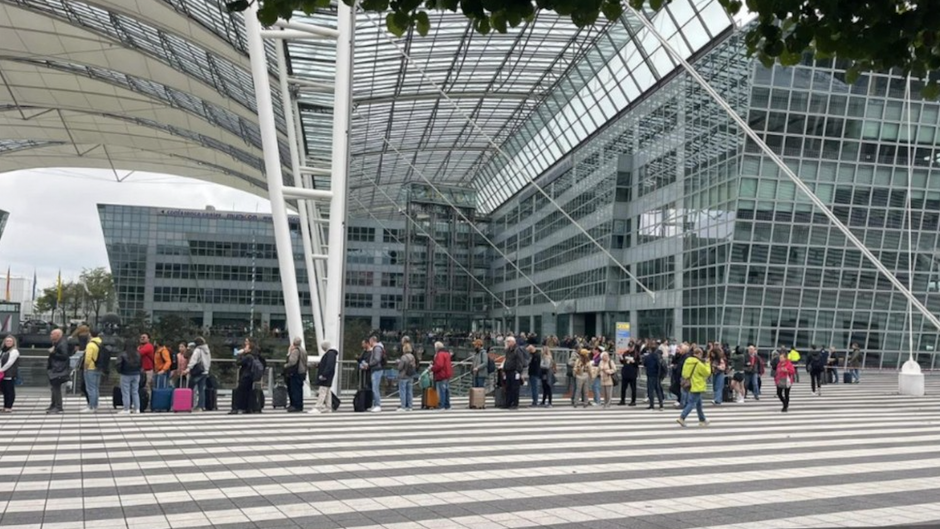 Chaos am Münchner Flughafen: Wer am Tag der Deutschen Einheit am 3. Oktober einchecken wollte, musste sich erst einmal anstellen – in eine zwischenzeitlich zwei Kilometer lange Menschenschlange.