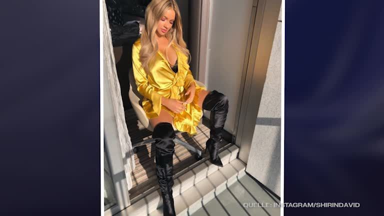 Was für ein Look! YouTuberin Shirin David zeigt uns, was für Spitzen-Dessous sie unter ihrem goldenen Satin-Bademantel trägt.