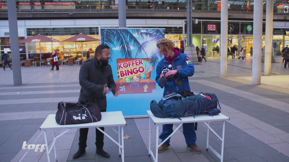 "taff" ist am Kölner Hauptbahnhof und spielt mit Sito und Prinz Kofferbingo. Wer von den beiden zuerst drei unserer gesuchten Gegenstände in seinem Koffer findet, gewinnt 50 Euro.