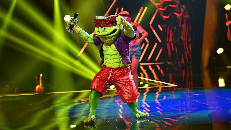 Ganz neue Töne stimmt der Frosch in Runde 2 an. Mit "Kung Fu Fighting" von Carl Douglas will sich der Animateur in die nächste Show singen. Aber lässt sich von der Songauswahl auch auf den Prominenten unter der Maske schließen? Bülent und Elton bleiben bei Wigald Boning.