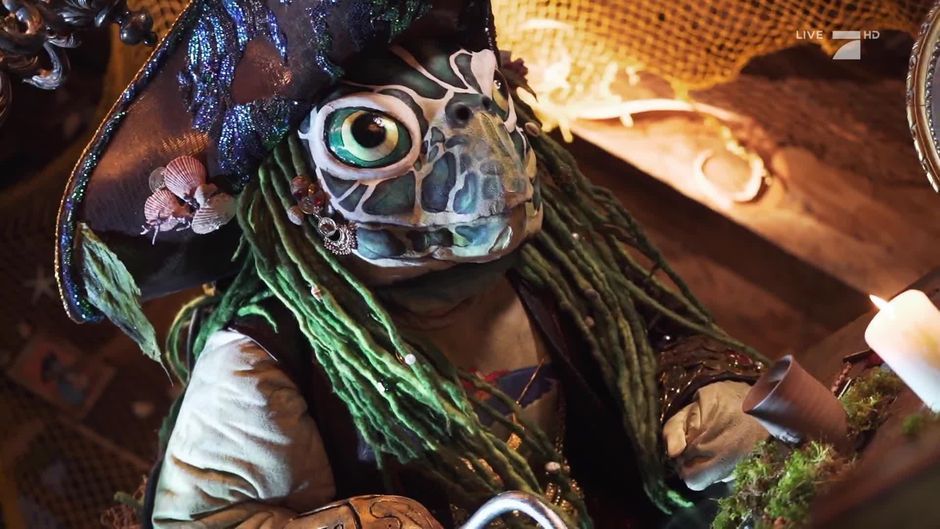 Die Schildkröte ist mit einem vorlauten Papagei gestrandet. Dabei hat sie schon einiges hinter sich. Sie ist Seeräubern entkommen, hat prachtvolle Schätze an Bord gezogen. Die Schildkröte liebt die salzige Luft der Freiheit und steuert jetzt mit voller Kraft auf die "The Masked Singer"-Bühne zu.
